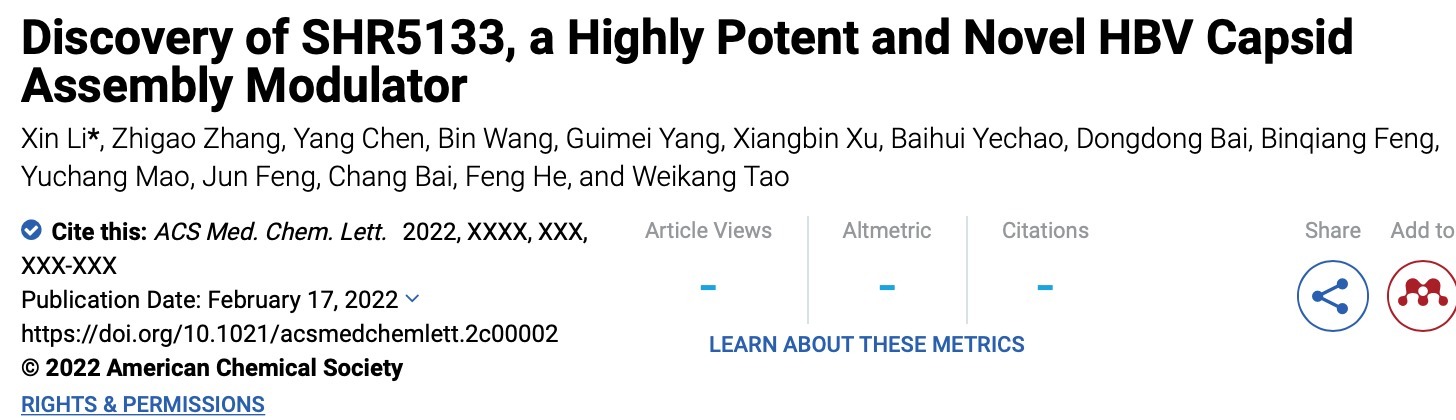 乙肝药化前沿,上海恒瑞医药科学家发现,新型高效化合物SHR5133